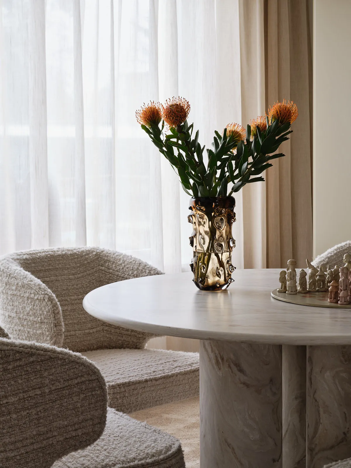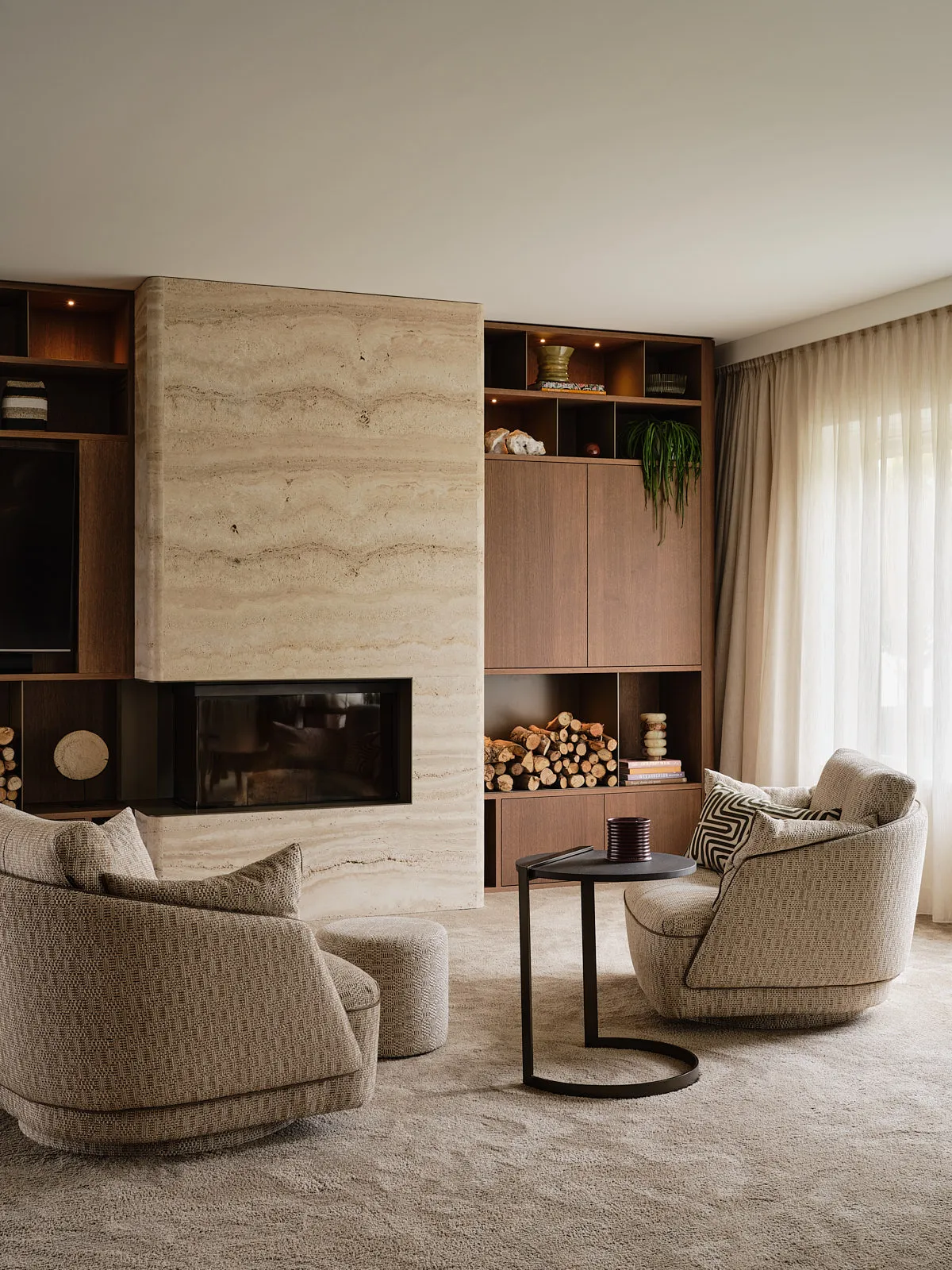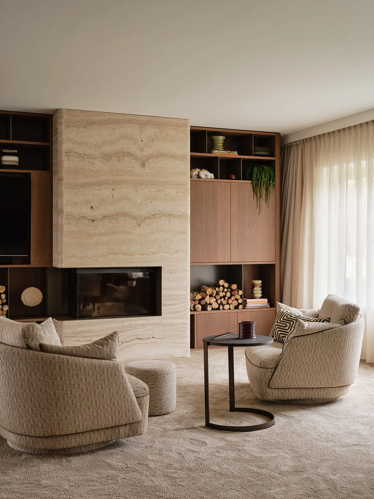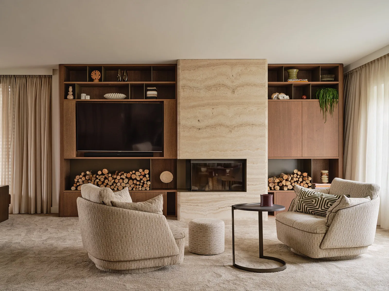 Een relaxte jaren 60-bungalow, omringd door een groene oase waar je echt vrij woont. Binnen draait alles om sfeer: een walnoot houten wand en maatwerkkasten geven warmte en karakter, terwijl groentinten en speelse kleuren en prints het geheel fris en levendig maken. Het voelt knus, een tikje retro en tegelijk helemaal eigen — zo’n plek waar binnen en buiten moeiteloos in elkaar overlopen.